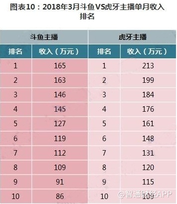 通过上文的数据对比可以看到,斗鱼的营销费用超过虎牙近4亿元,但虎牙无论在营收规模还是利润规模均远高于斗鱼,难道虎牙主播都在做“免费直播”?非也。在这份主播单月收入排名表中,虎牙主播的收入明显高于斗鱼,并且从整体的主播活跃度上,虎牙也明显高于斗鱼。