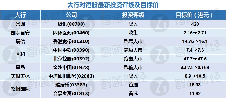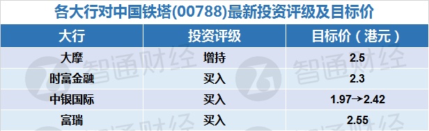 一、各大行对中国铁塔(00788)最新投资评级及目标价