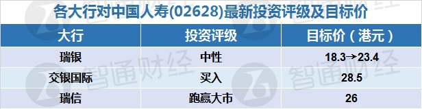二、各大行对中国人寿(02628)最新投资评级及目标价
