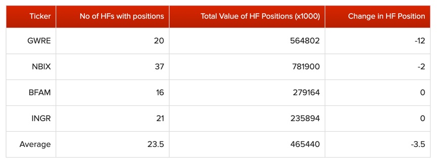 那么,对冲基金是如何看待其它与蔚来市场估值相符的股票呢?这些股票包括Guidewire Software(GWRE.US)、Neurocrine Biosciences(NBIX.US)、Bright Horizons Family Solutions(BFAM.US)和Ingredion(INGR.US)。