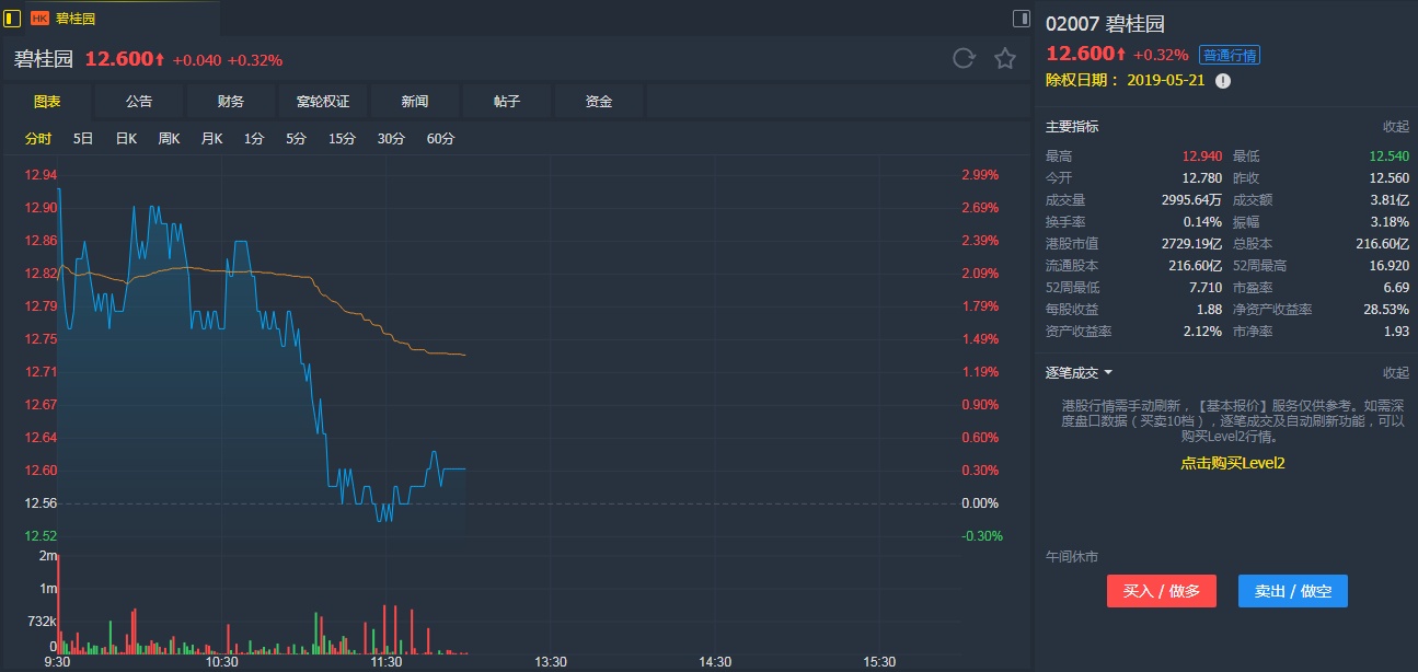 中金表示,尽管比较基数高,预计碧桂园于2019年二季度销售按年可持平,因基期效应弱化,下半年起公司的销售更可有所改善,公司2019年销售有望实现成长;2019及2020财年盈利有望分别增长20%及15%。