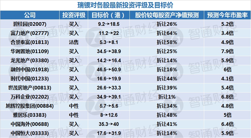 此外,该行升中国恒大(03333)评级,由“沽售”升至“买入”,将目标价由17.6港元升至31.9港元。该行将富力地产(02777)评级,由“中性”升至“买入”,将目标价由11.2港元升至22港元。