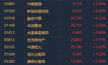 智通财经APP获悉,内房股昨日受重挫,今日集体回暖,截至发稿,中国奥园(03883)涨5.09%,新城发展控股(01030)涨4.62%,融创中国(01918)涨4.11%,华润置地(01109)涨3.58%。
