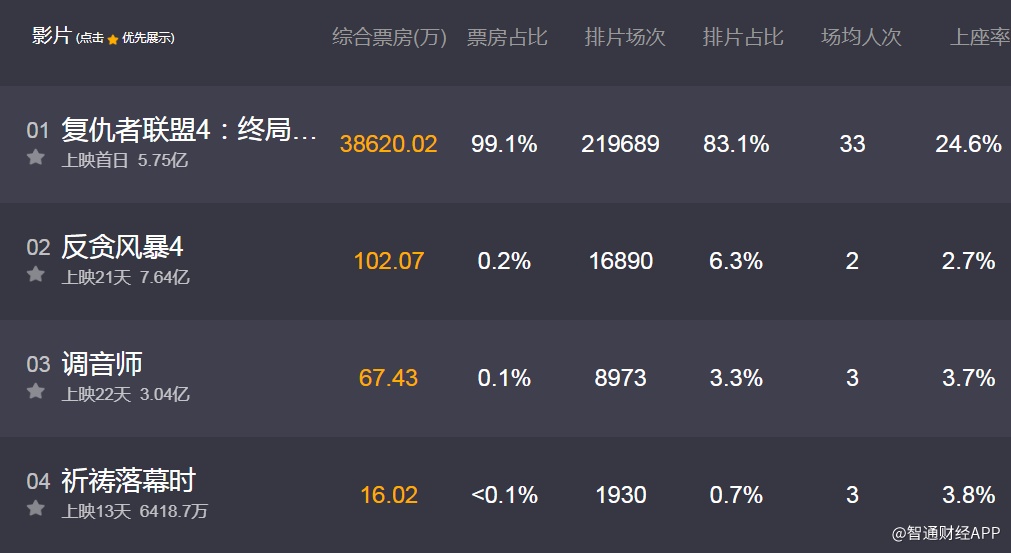 智通财经APP了解到,Fandango在4月18日就表示,《终局之战》数千场次的电影票已经售罄,而这部电影的北美首映要到4月25日,加上时差比国内晚了整整两天。