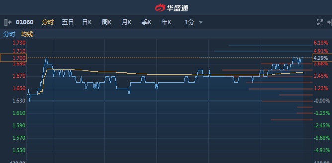 截至15时48分,阿里影业(01060)涨4.29%,报价1.7港元,成交额1.189亿。