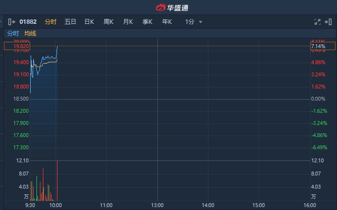 智通财经APP获悉,海天国际(01882)早盘高开高走,突破五日线,截至10时1分,涨7.14%,报19.82港元,成交额达1836万港元。