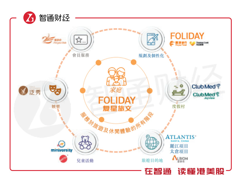 该公司构建以“家庭”为中心的旅游消费生态圈,目前业务辐射包括度假村、旅游目的地、儿童活动、娱乐活动、会员服务以及规划和个性化服务。以下为生态圈体系示意图: