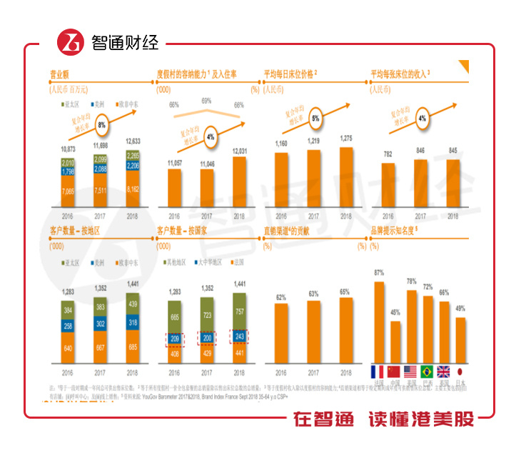 此外,公司的娱乐活动、活动活动以及规划及个性化服务都可以在度假村和旅游目的地业务上找到创收场景。这些业务称之为场景服务业务,在创收上有一定的比重,且收入增长也非常稳健,2018年该项目收入增长8.7%,近三年复合增长率为7.5%。