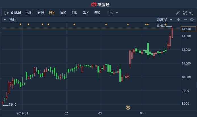 智通财经APP获悉,九兴控股(01836)绩后股价持续扬升,早盘再度走强,高见14.38港元创逾两年新高,截至10时48分,涨9.86%,报14.26港元,成交额达2889万港元。