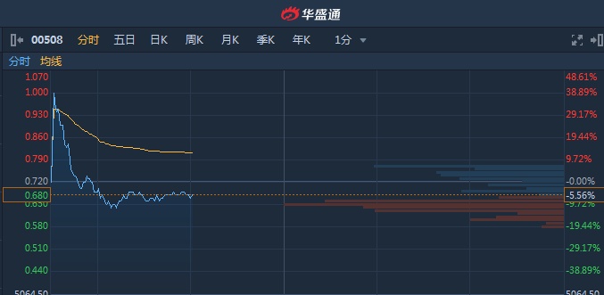 智通财经APP获悉,鼎亿集团投资(00508)早盘曾飙升40%,高见1.02港元创近14个月新高,随后高位跳水股价倒跌。截至11时00分,跌5.56%,报价0.68港元,成交额3.684亿。