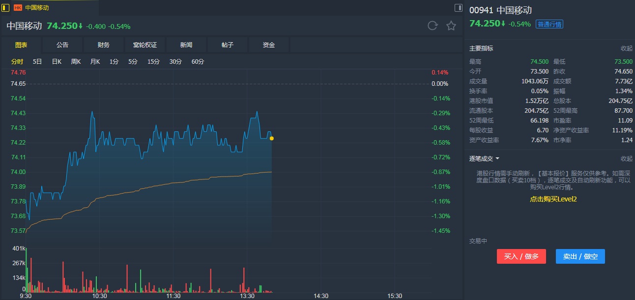 智通财经APP获悉,大和总研发表研究报告,中移动(00941)今年首季收入疲弱但符合该行预期,由于集团的成本管理程度未显著,净利润逊于预期8.7%。该行重申其“优于大市”投资评级,维持目标价89.8港元。