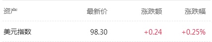 美元指数继续上扬,已突破98关口,截至发稿,美元指数涨0.25%,报98.30。