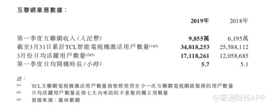 数据显示,2019年第一季度通过欢网运营的激活新用户数量为291.1万,同比提升41.9%;历史累计总用户量攀升至3,481.8万,同比提升36.1%;日均活跃用户数量跃升至1,711.8万,同比快速提升42.0%。用户日均开机时长达5.7小时,同比增长11.8%。