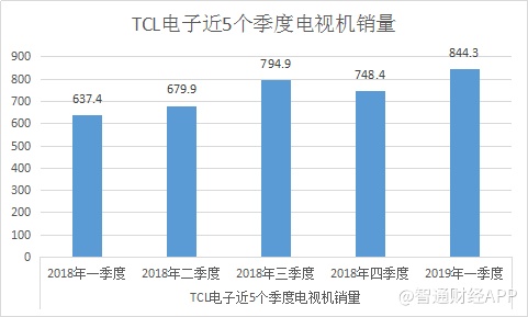 智通财经APP获悉,TCL电子于4月23日公布的截至2019年3月31日止三个月业务进展公告显示,2019年第一季度,公司电视机销售量同比大幅增长32.5%至844万台,再创单季历史新高。