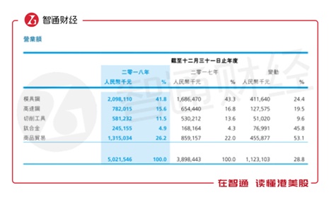 不仅毛利增长速度超过营收增长,净利润增幅更是大幅超越前两者,公司盈利能力有了大幅的提升。其中营收增长是全业务齐头并进带动的。模具钢、高速钢、切削工具、钛合金和商品贸易等业务,分别同比增长24.4%、19.5%、9.6%、45.8%和53.1%,带动整体营收规模28.8%的提升。