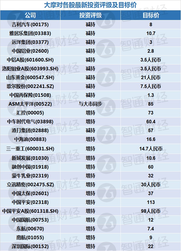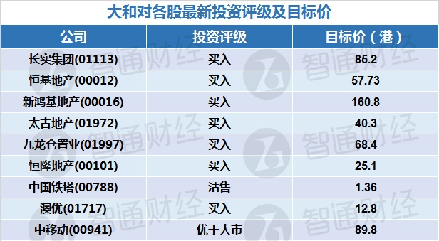 一、大和对各股最新投资评级及目标价二、汇丰对各股最新投资评级及目标价三、大摩对各股最新投资评级及目标价四、高盛各股最新投资评级及目标价五、瑞银对各股最新投资评级及目标价六、大行对港股最新投资评级及目标价