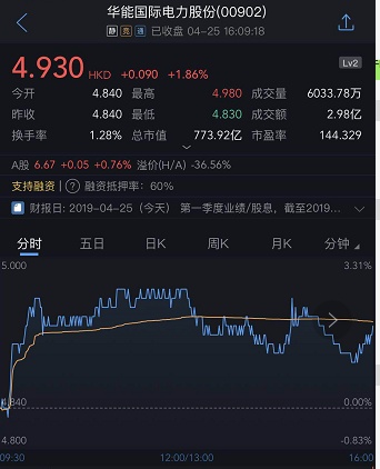 截至今日收盘,华能国际电力股份涨1.86%,报4.93港元。