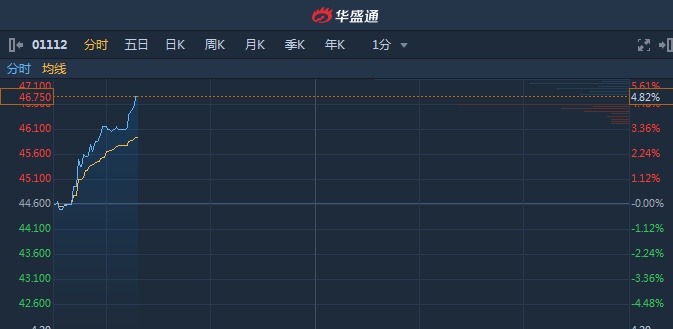 智通财经APP获悉,H&H国际控股(01112)首季收益同比增2.4%至约21.74亿元人民币。截至10时18分,涨4.82%,报价46.75港元,成交额1618万。