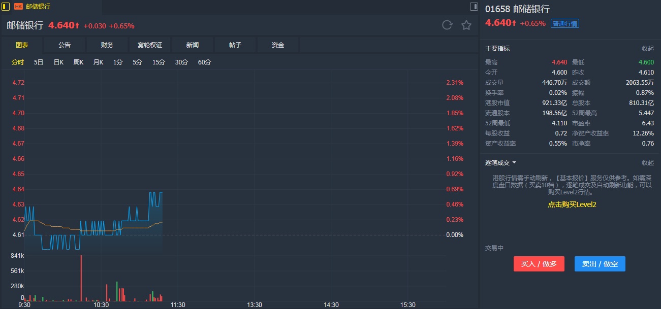 智通财经APP获悉,瑞信发表报告表示,维持邮储银行(01658)“中性”评级,目标价自4.5港元上调至4.6港元。