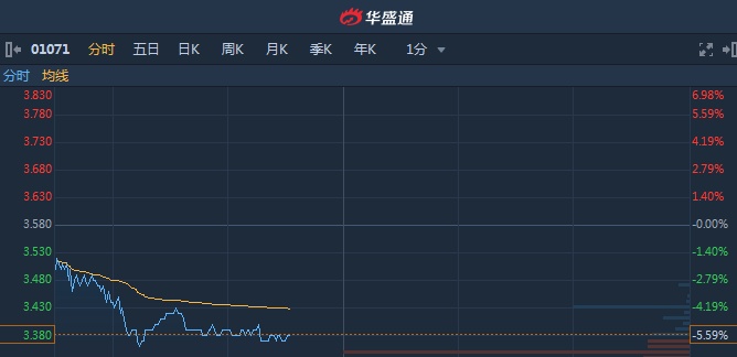 智通财经APP获悉,华电国际电力(01071)昨日盘后发布首季度业绩,今日股价大幅下挫。截至11时32分,跌5.59%,报价3.38港元,成交额5805万。