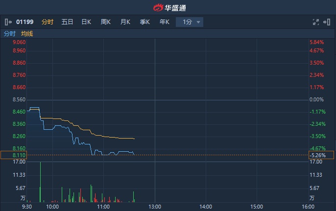 智通财经APP获悉,中远海运港口(01199)早盘呈单边下挫态势,截至11时35分,跌5.26%,报8.11港元,成交额达976.6万港元。