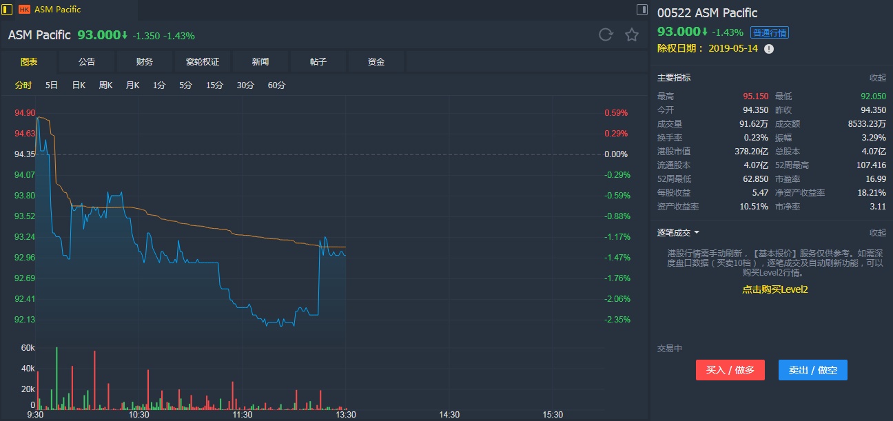 该行认为,ASM太平洋首季度数入同比跌23%,唯按季跌7%,均低于市场预期,毛利率同比跌1个百分点至33.9%,但低于预期约1.6个百分点,预计主要由低使用率,以及产品组合问题。由于2018年下半年订单相对出货比率回升至0.99,反映公司复苏迹象。CIS设备业务表现正面,先进封装解决方案订单则不明,LED市场仍呆滞。