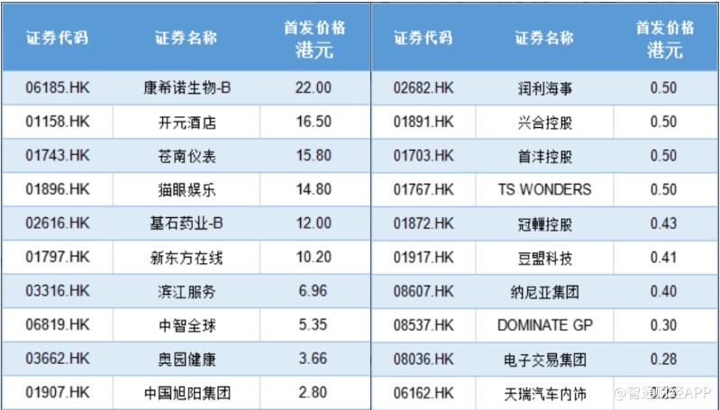 “港股第一疫苗股”康希诺生物-B(06185)以发行价22港元,成为一季度唯一一只发行价超过20港元的股。