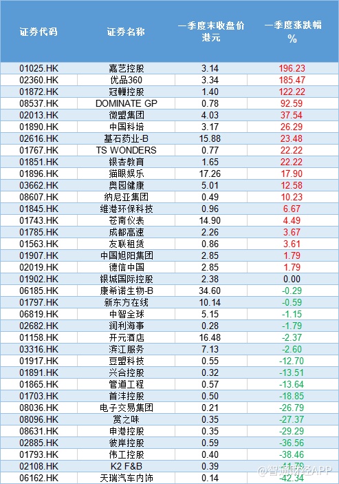 整体而言,一季度上市的港股普遍属于低价范畴,虽然平均发行价为3.79港元,但有18家公司发行价低于1港元,如天瑞汽车内饰(06162)、电子交易集团(08036)、DOMINATE GP(08537),发行价分别为0.25港元、0.28港元、0.3港元。