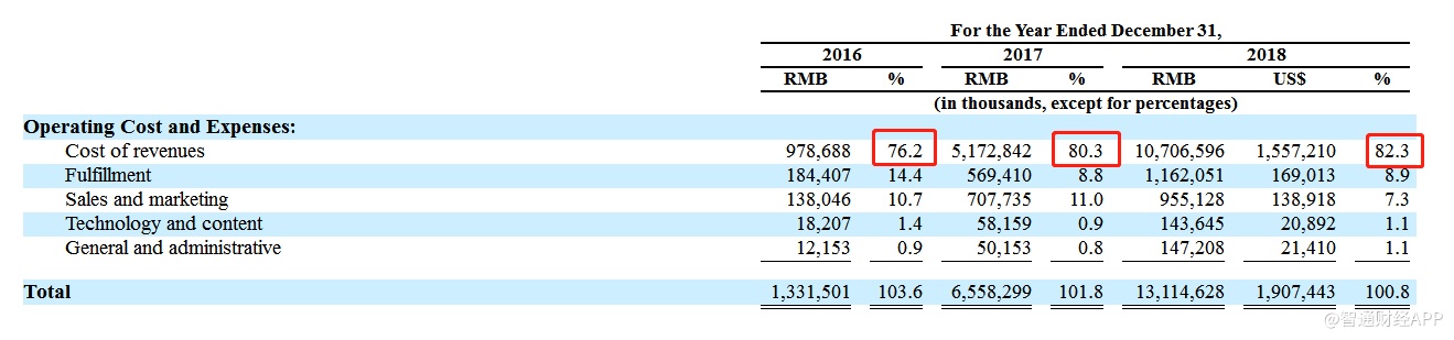 但云集所面对的不仅仅是用户流量的压力,收入成本的居高不下,也是一大难题。智通财经APP发现,从2016年-2018年,云集的收入成本占总成本的比例分别为76.2%、80.3%、82.3%,逐年走高,2018年较2016年高出了6.1个百分点。