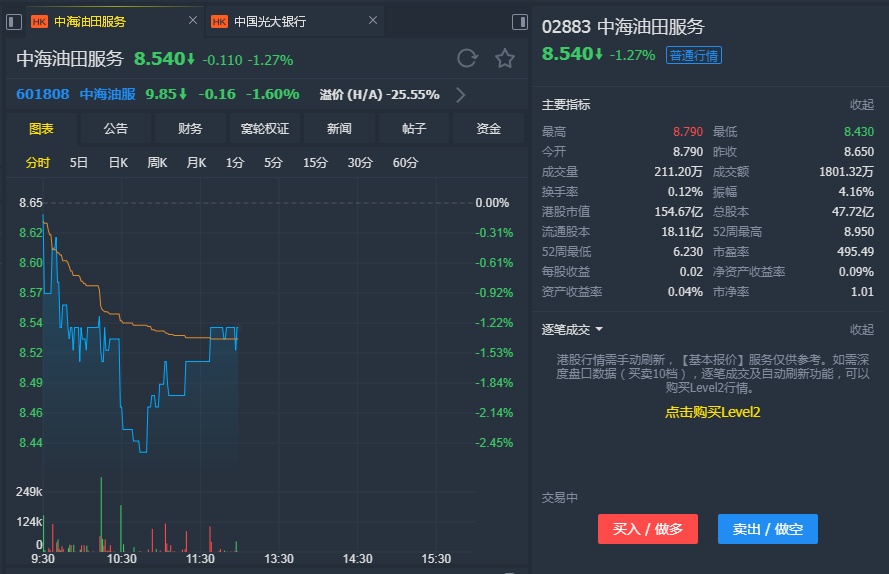 瑞信最新预测2019年中海油田服务纯利为8.06亿元人民币,原估计全年亏损2.06亿元人民币,并上调2020-2021年的盈测233-733%。