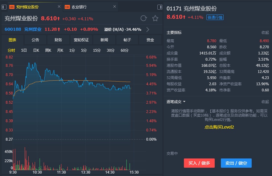 报告指出,主要由于产品均价高于预期,兖州煤业(01171)今年首季盈利按年上升3.6%。而集团管理层称,当石拉乌素煤矿(Shilawusu mine)的采矿权问题得到解决,生产应可在今年下半年正常化。