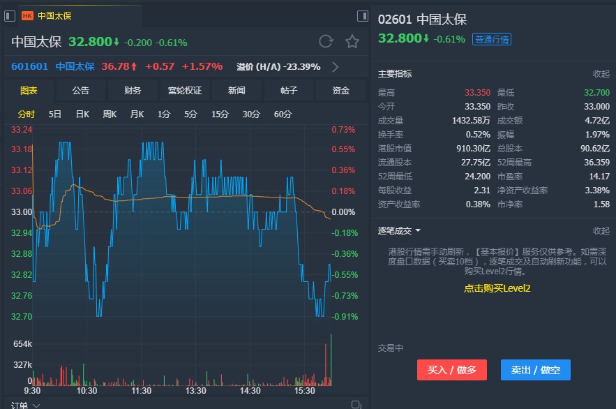 智通财经APP获悉,中国太保(02601)公布首季业绩后,获野村维持今年新业务价值增长8%的预测不变,评级仍为“买入”,目标价为40.84港元。