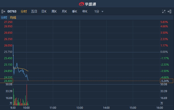 智通财经APP获悉,中兴通讯(00763)高开低走,延续弱势,截至10时3分,跌5.24%,报24.4港元,成交额达9818万港元。