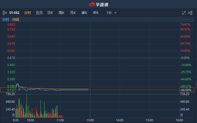 智通财经APP获悉,金诚控股(01462)早盘低开低走,临近午间收盘紧急停牌,停牌前大跌66.6%,报0.157港元,成交额达3167.02万港元。