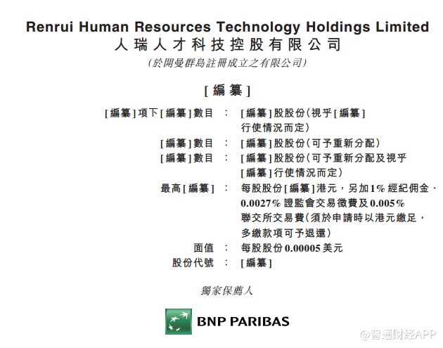 智通财经APP获悉,据港交所4月29日披露,人瑞人才科技控股有限公司向港交所递交上市申请,BNP PARIBAS为其独家保荐人。