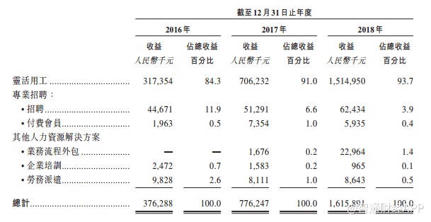 1.灵活用工服务:收取所有外包员工相关人工成本的溢价;2.专业招聘服务:收取根据获聘候选人人数计算的固定费用,或于招聘高级的或行政级人员时根据职位的级别及成功安排候选人的年薪百分比收费等;3.其他人力资源服务,包括业务流程外包服务、劳务派遣服务,以及就定制企业培训课程个别收费。