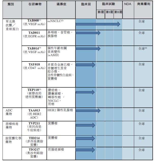 本公司拟将融资款项用于以下用途:1)TAB008药物一系列研发和潜在商业推出;2)TAA013、TOZ309以及TOM312等一系列药物研发以及商业推出;3)药物质量控制、生产设施、质量保证设施以及企业规划系统软件;4)内部研究、外部许可以及业务开发;5)运营以及其他一切公司用途。
