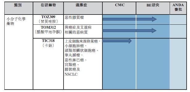 据招股书所述,下表三种在研小分子化学药物预期将于2020年下半年启动商业化。