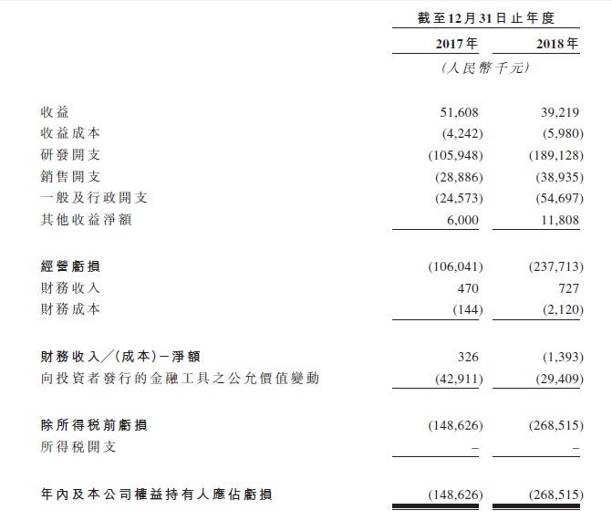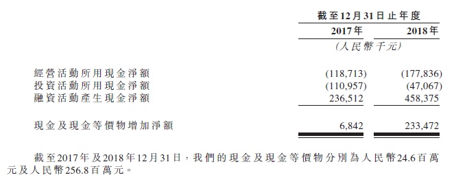 招股书显示,东曜药业于2017财年收益为5160.8万元人民币,年内及该公司权益持有人应占亏损约为1.49亿元人民币;2018财年收益3921.9万元人民币(同比下跌24%),年内及该公司权益持有人应占亏损约为2.69亿元人民币(同比亏损增长81%)。公司于2017财年获得的现金及现金等价物总额为24.6百万元人民币,于2018财年则大幅增长至256.8百万元人民币。