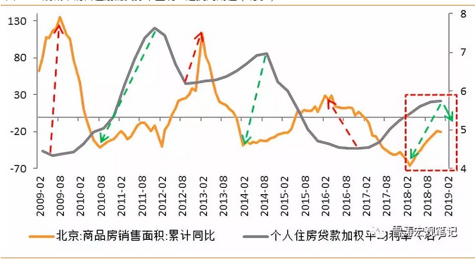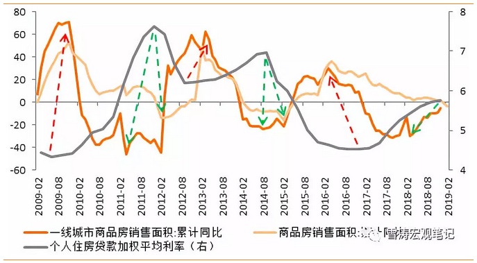 从2018年12月起,全国首套平均房贷利率开始回落,结合略偏宽松的货币环境和趋于宽松的房地产政策,预计房贷利率暂时延续下行。如果简单套用历史规律,本轮商品房销售同比增速下行的经验底部可能在2019年年中之前。