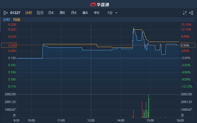 智通财经APP获悉,国盛投资(01227)午后放量扬升,涨幅一度扩大至12%,后略有回落,截至15时31分,涨5.56%,报0.209港元,成交额达3578万港元。