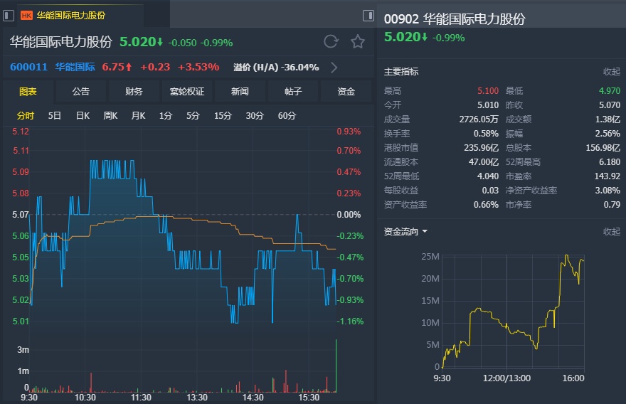 报告指出,华能首季经常性每股基本盈利按年增114%,主要由于每单位煤炭燃料成本按年减逾9%。煤炭单位利用小时按年跌1.6%,而同业华电(01071)按年增4.7%,中国电力(02380)则跌6%。
