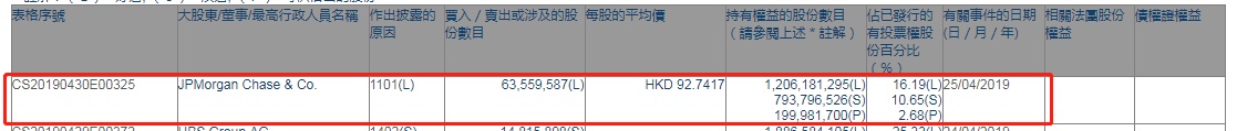 智通财经APP获悉,根据联交所资料显示,摩根大通于4月25日增持中国平安(02318)6355万股,每股作价92.74港元,总值约58.93亿港元,最新持股数目约12.06亿股,最新持股比例为16.19%。
