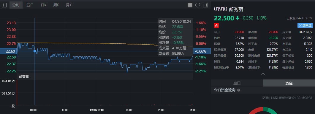 截至今日收盘,中国人寿(02628)收跌1.10%,报22.50港元。