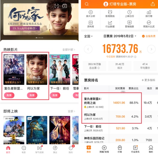 同时,另一部口碑与《复联4》齐平的作品,是《何以为家》(迦百农)。该片获得了奥斯卡最佳外语片提名,是这个五一档除了超英题材外最值得关注的影片。该片在淘票票上同样获得了9.1分的高口碑,豆瓣评分也高达8.8分。在五一假期的第二天,《何以为家》票房突破6000万元,反超《下一任:前任》成为票房仅次于《复联4》的档期热门。