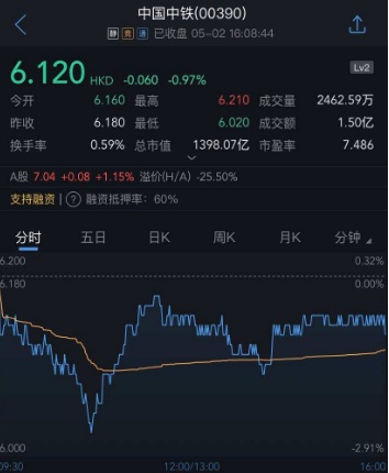 智通财经APP获悉,根据联交所资料显示,贝莱德于4月26日减持中国中铁(00390)53.7万股,每股作价6.23港元,总值约334.6万港元。截至今日收盘,中国中铁(00390)收跌0.97%,报6.12港元。