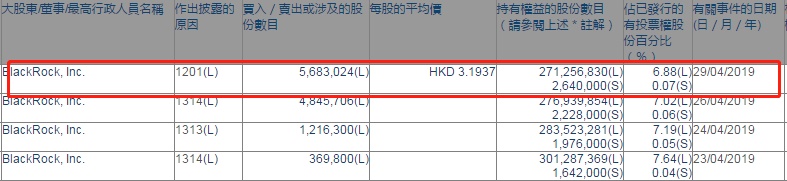 智通财经APP获悉,根据联交所资料显示,贝莱德于4月29日减持中国铝业(02600)568.3万股,每股作价3.19港元,总值约1812.9万港元,最新持股数目约2.71亿股,最新持股比例为6.88%。