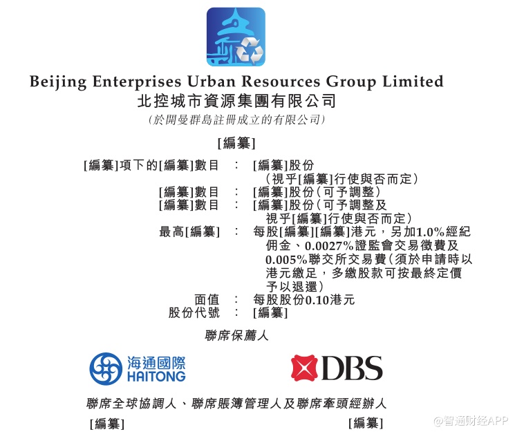 智通财经APP获悉,据港交所披露,5月2日,北控城市资源集团有限公司向港交所递交上市申请,海通国际和星展银行(DBS)为其联席保荐人。