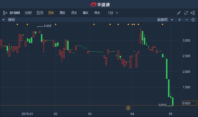 智通财经APP获悉,润东汽车(01365)今日盘中再度跳水,低见0.91港元,创历史新低,截至15时20分,跌20.51%,报0.93港元,成交额达774.5万港元,四日累挫逾60%。