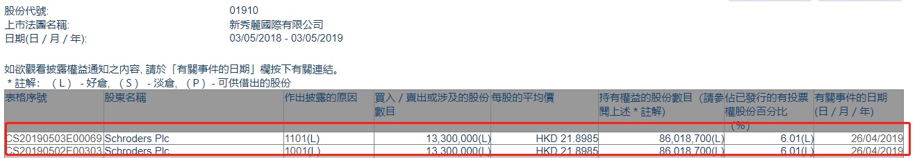 智通财经APP获悉,根据联交所资料显示,施罗德于4月26日增持新秀丽(01910)1330万股,每股作价21.90港元,总值约2.91亿港元,最新持股数目约8602万股,最新持股比例为6.01%。